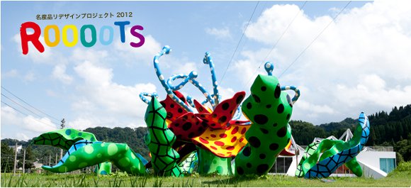 Roooots(ルーツ)は、アートによる地域活性化に取り組む新潟県・越後妻有地域の名産品13品目(食品、酒、浴衣など)のリデザイン案を、クリエイターポータルサイト「ロフトワークドットコム 」で公募し、持続可能な地域活性につなげる試みです。選ばれたデザインは、「大地の芸術祭 越後妻有アートトリエンナーレ2012」に合わせて商品化され、公式グッズとして販売されます。