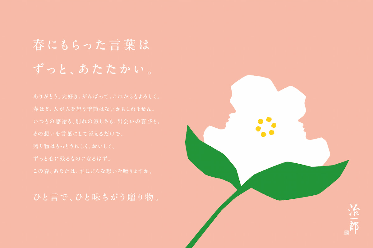 デザインと花のイラストを担当したのはアートディレクターの安藤真理さん(marii)、コピーを考えたのは石本香緒理さん(AO CHAN)。ヤタローで「治一郎」ブランドを担当する長谷川ちひろさんからは「出会いも別れもあり、人の想いが交差することの多い春に合わせた、言葉を贈ることができるデザインを考えてほしい」と話があった。