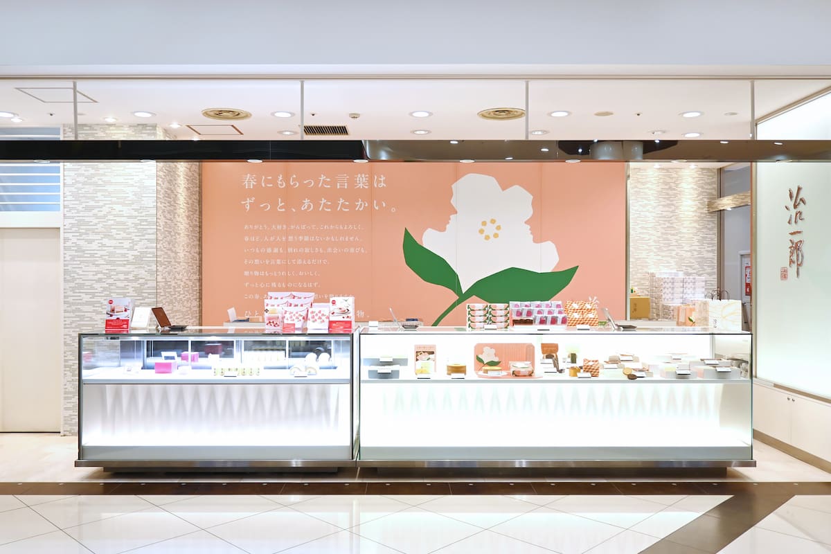 食品メーカーのヤタロー(静岡・浜松)が展開するバウムクーヘンブランド「治一郎」は、3月1日から、期間限定の紙袋「言葉を贈る手提げ」(無料)の提供を開始した。正面には白い花が描かれており、その中央の部分に「感謝の気持ちです」「元気でいてね」「よい春を」などの黄色のメッセージシールを貼って、人に贈ることができる。シールは全8 種類。購入者が好きなメッセージを書けるように、空欄のシールも1枚付いている。