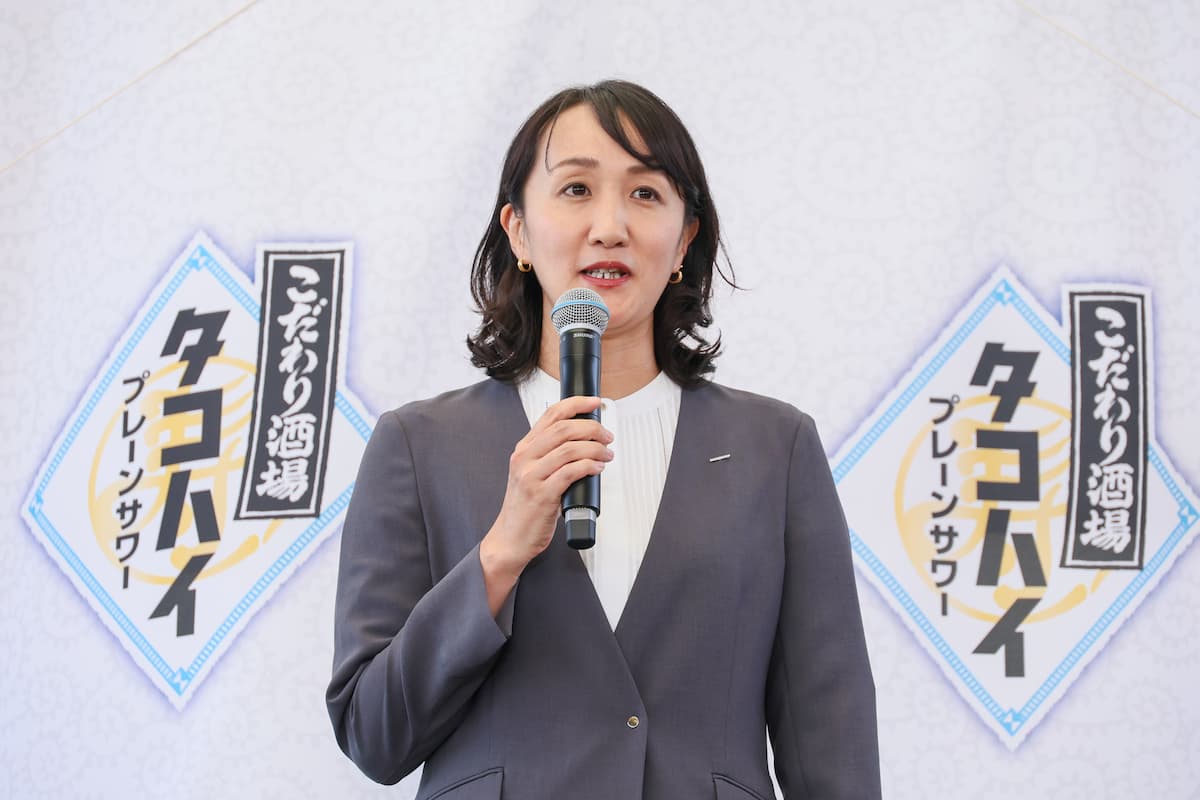 写真 「京急蒲タコハイ駅酒場」のPRで発表会に登壇した田中みな実さん
