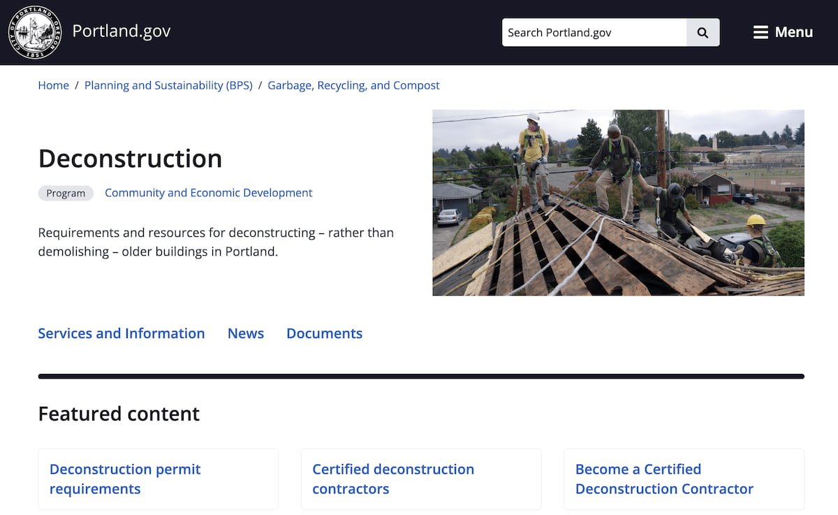 私が住むポートランドには、古い家を対象にした「Deconstruction requirement(解体条例)」というものがあります。この条例により、古い家は、破壊するのではなく解体することが義務付けられています。