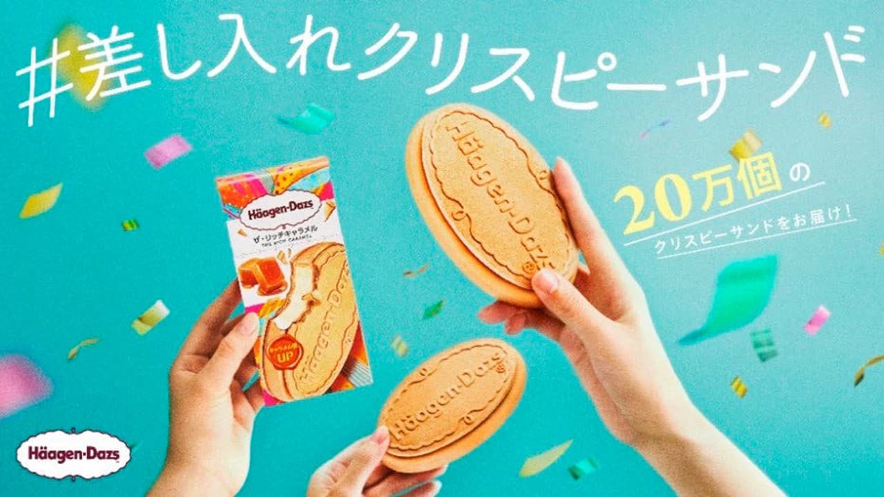 ハーゲンダッツジャパンは5月1日、「#差し入れクリスピーサンド」プロジェクト」をスタート。音楽やスポーツのイベントなどで、年間を通じ合計20万個のクリスピーサンド「ザ・リッチキャラメル」を無料配布する。