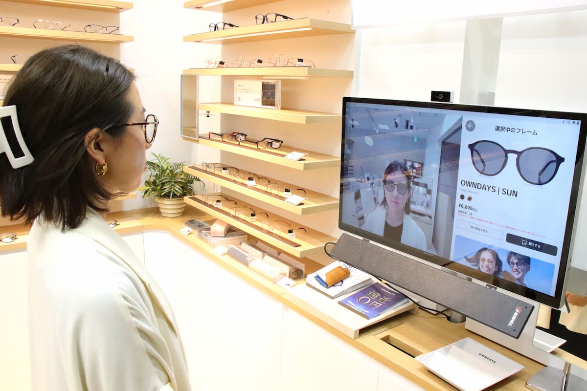 新店舗の広さは約31.76平方メートルで、全国のオンデーズ店舗の中でも4番目に狭い。一方、同社独自の生成AIと無線自動識別(RFID)技術を組み合わせた新サービス「OWNDAYS MIRROR」(オンデーズミラー)や、アイウェア業界において先行導入した「リモート視力測定サービス」を展開。キャッシュレスセルフレジも初めて採用するなど、次世代の設備をそろえている。