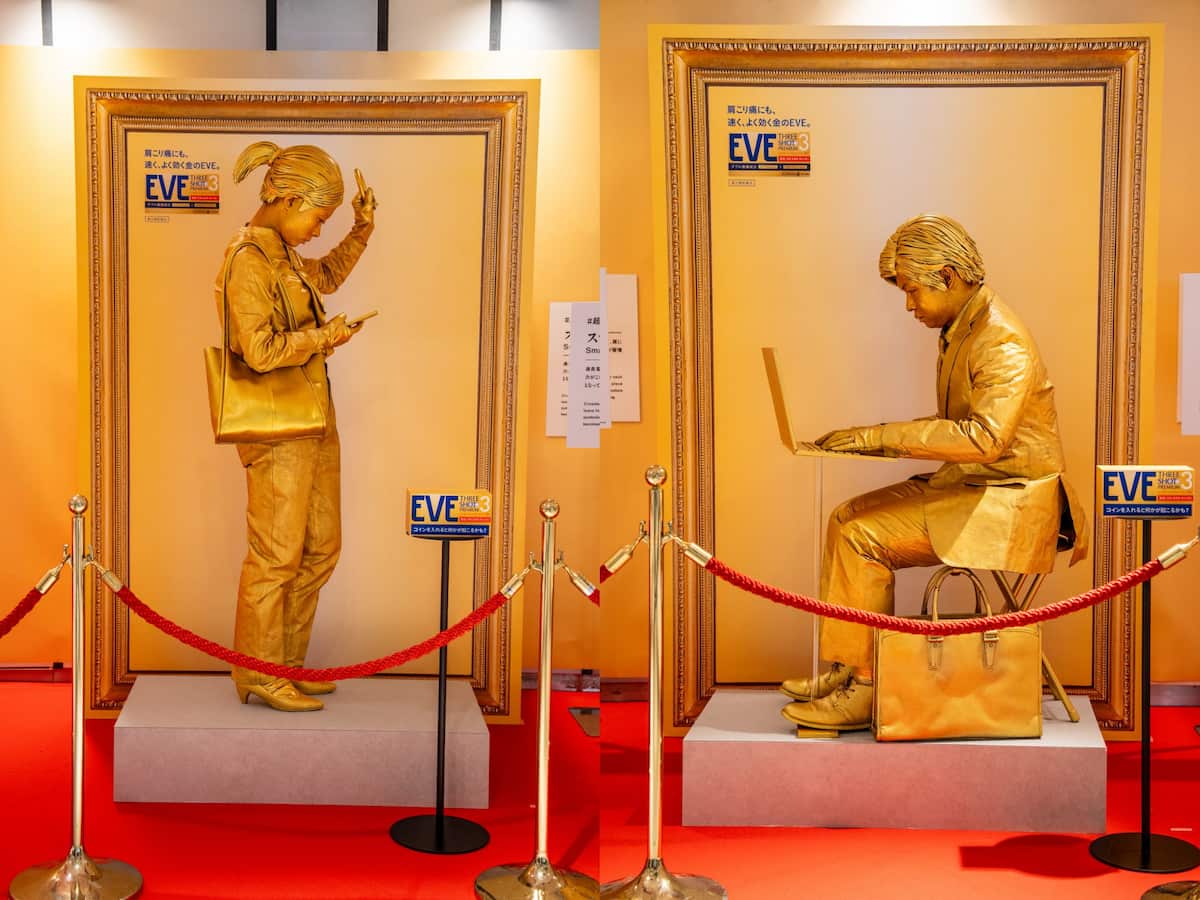 エスエス製薬は8月18日、鎮痛薬「EVE(イブ)」の啓発施策として、肩こり痛の原因を題材にした交通広告「超酷な姿勢展」を大阪駅前地下道(大阪市北区)で始めた。パフォーマーが彫刻のように静止する「彫像パフォーマンス」や、コインを入れて“つらい姿勢”を選ぶ体験型の仕掛けを展開。初日だけで延べ1500人がコイン投票に参加し、約2600人が観覧。3日間で延べ4000人が体験・接触するなど、大きな注目を集めている。
