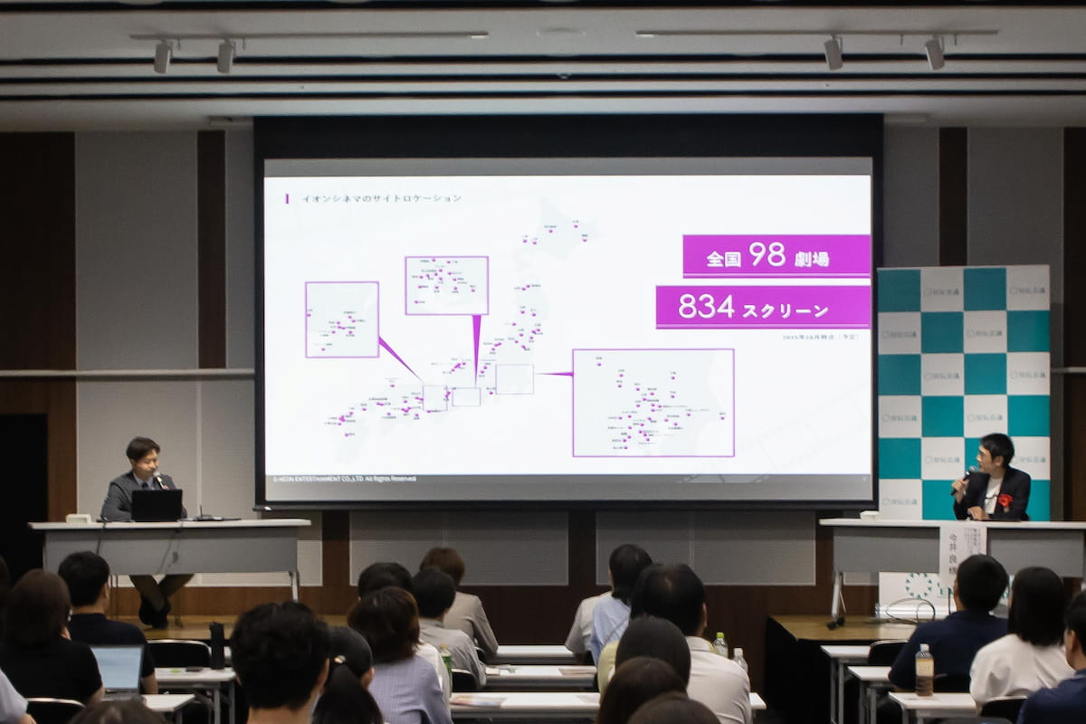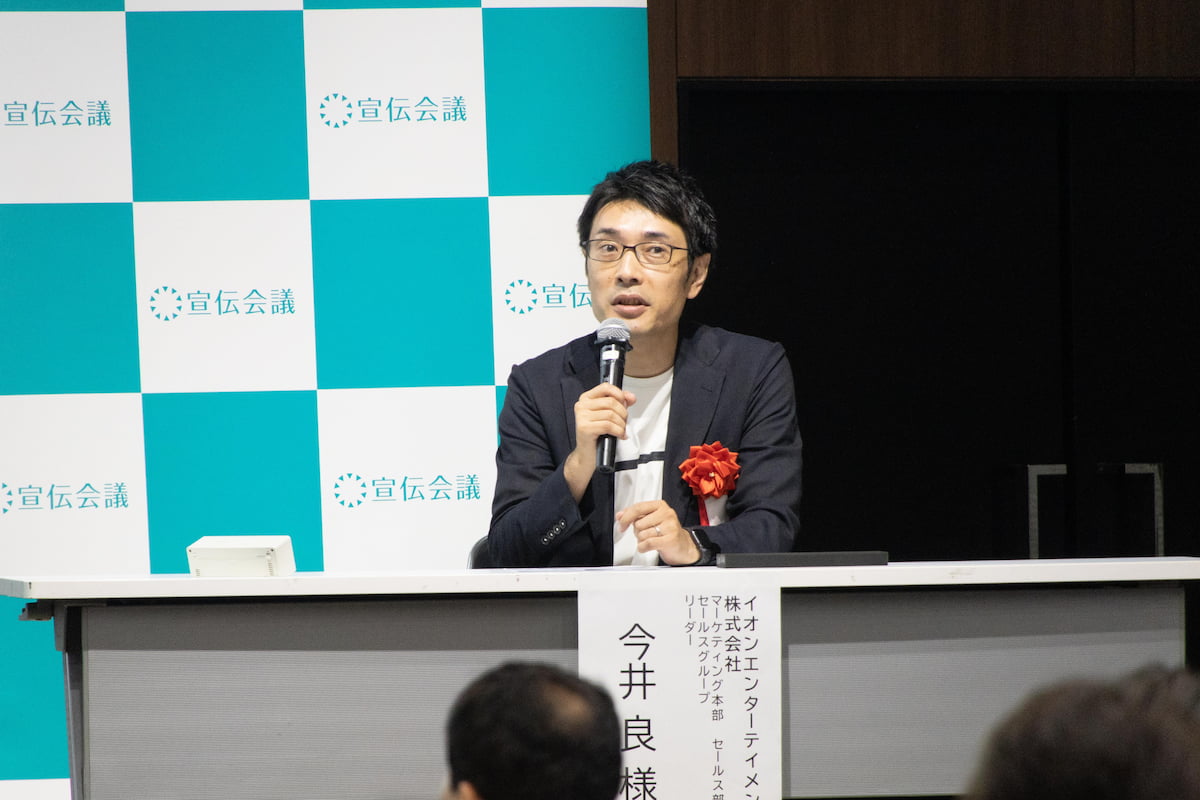 続いて登壇したのは、イオンエンターテイメントの今井良氏。同社は、全国98劇場・834スクリーン(25年10月時点予定)のイオンシネマを展開し、映画館を「感動の輪をつくる場所」と捉えている。今井氏は、広告が嫌われがちな時代において、ブランドが生活者とポジティブに出会う手段として、シネアドが果たす役割について語った。