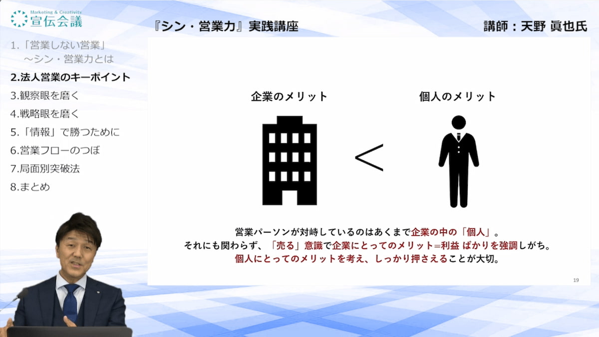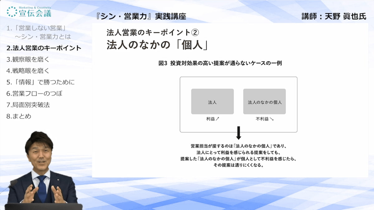 投資対効果というロジックももちろん重要ですが、それだけで人は動きません。株式会社カクシンの天野眞也氏が提唱する「シン・営業力」で欠かせない、担当者個人の心を動かすアプローチの重要性を解説します。