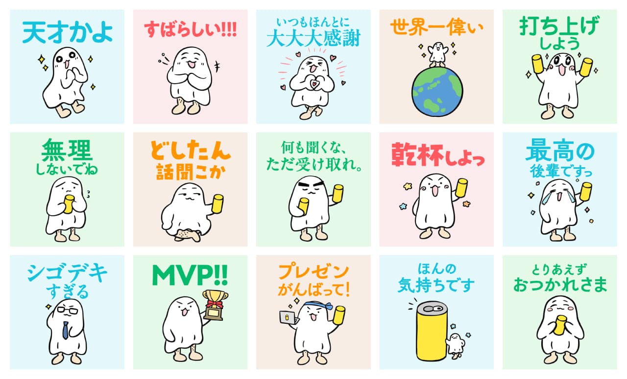 スタンプは、同サービスのオリジナルキャラクター「デネさん」が日常のささやかな気持ちを表現するデザインで、200種類以上をラインナップしている。「デネさん」はかわいらしい見た目に反して、すね毛など特徴的な要素を持つ。戦略推進・CRM部の竹内菜緒美氏によると「人間関係を紡ぎつつ、お酒を届けるサービスを体現するキャラクター」として、「お節介で少し不器用なオジサン」をモチーフにしたという。
