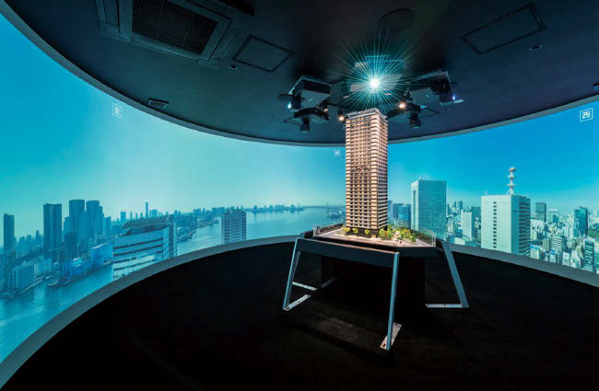 小佐見:約8年前、当社が手がけたマンションギャラリーでヴィレッジさんにシアター映像を制作いただいたのが始まりです。円形の中庭を備えた特徴的な構造のマンションだったのですが、部屋から見た風景を模型とプロジェクションマッピングを用いて、柵の外側からのぞき込めるような体験として表現したのです。