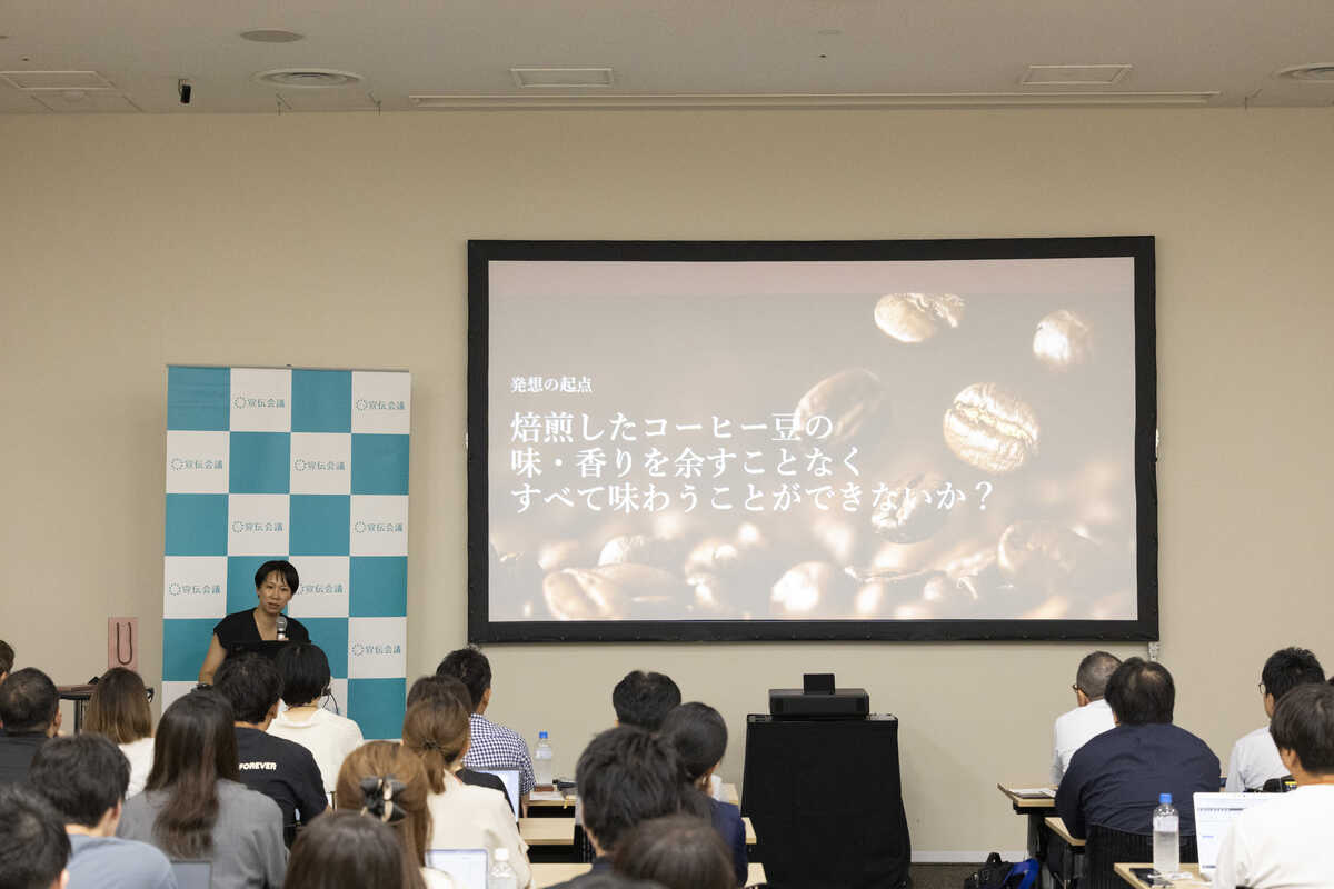 「YOINED」は、食べるスタイルのコーヒー という未知の領域に挑戦した商品。開発のきっかけは、研究員による「焙煎豆の味と香りを余すことなく味わいたい」という発想から始まり、20年にわたる試行錯誤を経て開発された。小坂氏は「食べるコーヒーに、果たしてどんな価値があるのか」という問いに立ち返った。