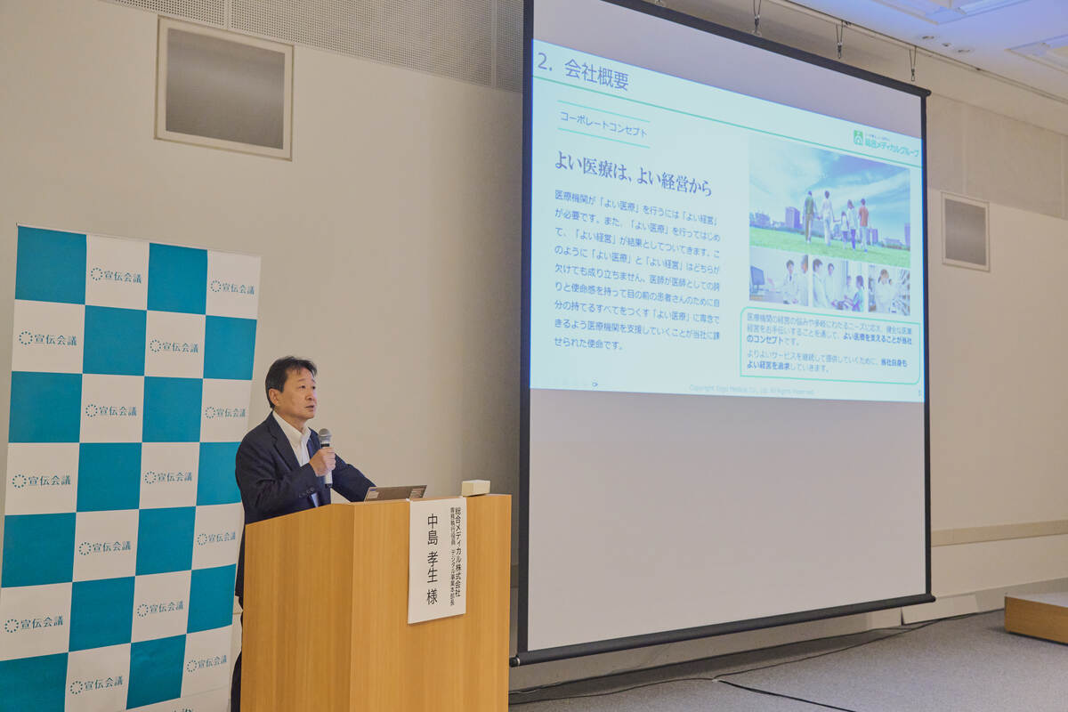 総合メディカルは全国1000超の拠点をもち、医療機関の経営コンサルティングや調剤薬局の運営、医師の紹介・医業継承など、医療機関経営のトータルサポートを展開している。中島氏は冒頭で、現代の医療界が抱える課題を指摘。医療費の増大や医師不足、働き方改革の遅れ、地域偏在など複合的な問題が山積みしていると語った。解決の鍵として注目したのが「医療DX」。マイナ保険証や電子処方箋、電子カルテといったデジタル化の進展により、医療現場は従来の枠組みから脱却しつつある。