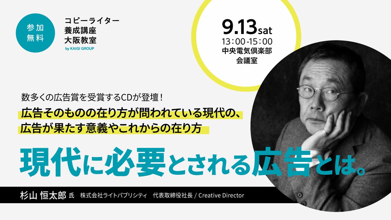 | お問い合わせ | コピーライター養成講座_地域統括事務局 TEL:06-7713-6750 MAIL:cac-regional@sendenkaigi.co.jp https://www.sendenkaigi.com/creative/courses/cac_free/ |