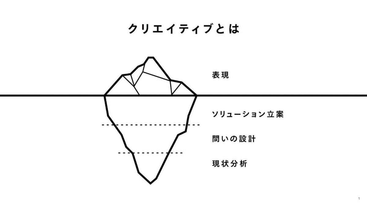 Design & Brandチームが考える「クリエイティブ」。アウトプットである表現=「氷山」の下にあるプロセスこそ重要だと説いた。