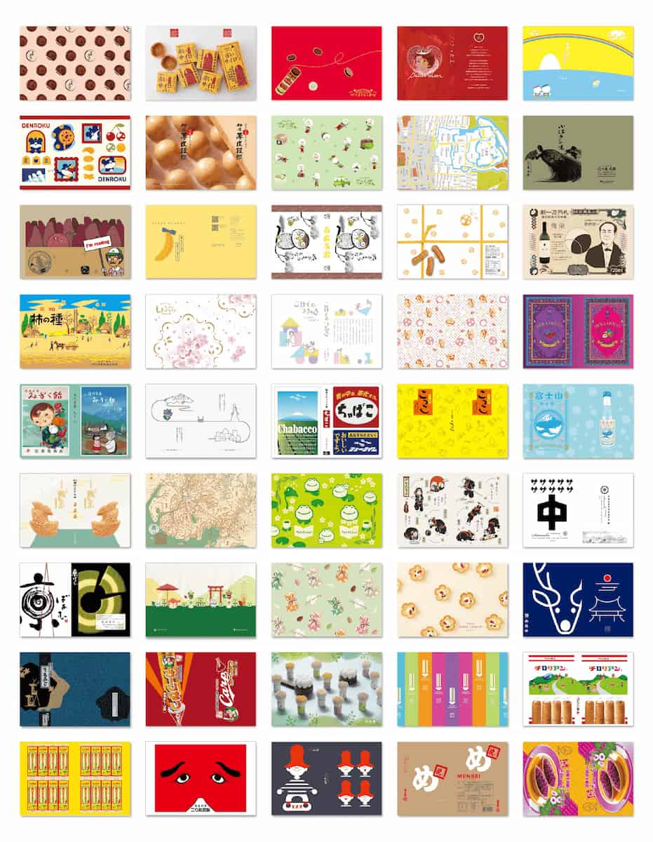 北海道から沖縄まで、45社分のご当地商品がモチーフになったブックカバーデザイン。