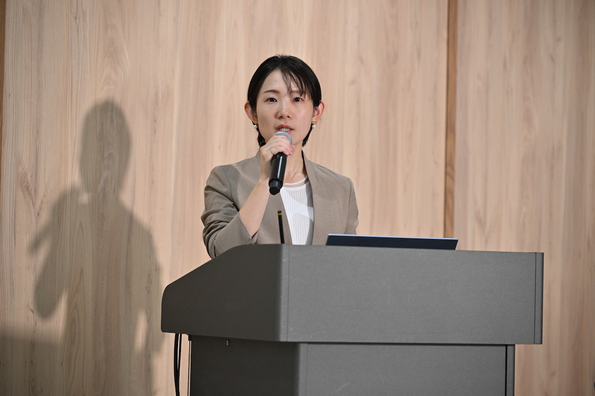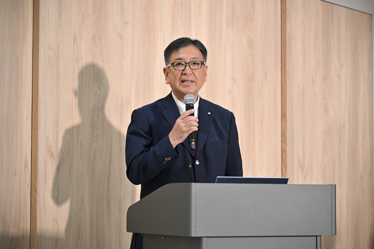 江原社長は1975年にポテトチップス事業へ参入した背景を説明。当時未利用だった北海道産ばれいしょを活かし、「自然のおいしさを丸ごと使用する」という創業の精神を強調した