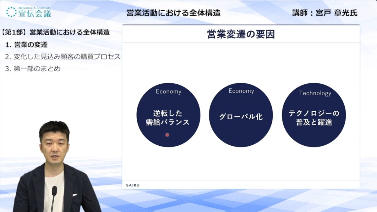 営業に声がかかる頃には、すでに顧客の中で候補が絞られている。BtoB企業では常識となり、従来型の営業活動は通用しにくくなっています。なぜこのような変化が起きたのか、そして今の営業担当者や組織には何が求められるのかを、株式会社才流(サイル)のコンサルタントである宮戸章光氏が解説します。