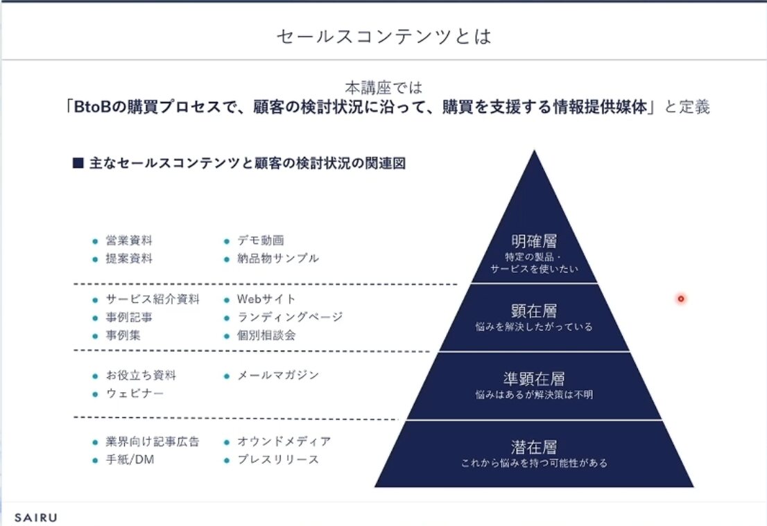 顧客が求める情報を、求めるタイミングで提供するための具体的なコンテンツ作成プロセスや、効果的な使い分け方については、「BtoB企業のためのセールスコンテンツ作成講座」で詳しく解説しています。セールスコンテンツの戦略的な活用を考えている方は、ぜひチェックしてみてください。