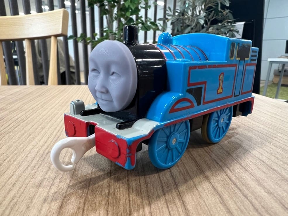 息子の顔をトーマスに換装した時の画像(最近3Dプリンターに夢中です)(小堀氏)