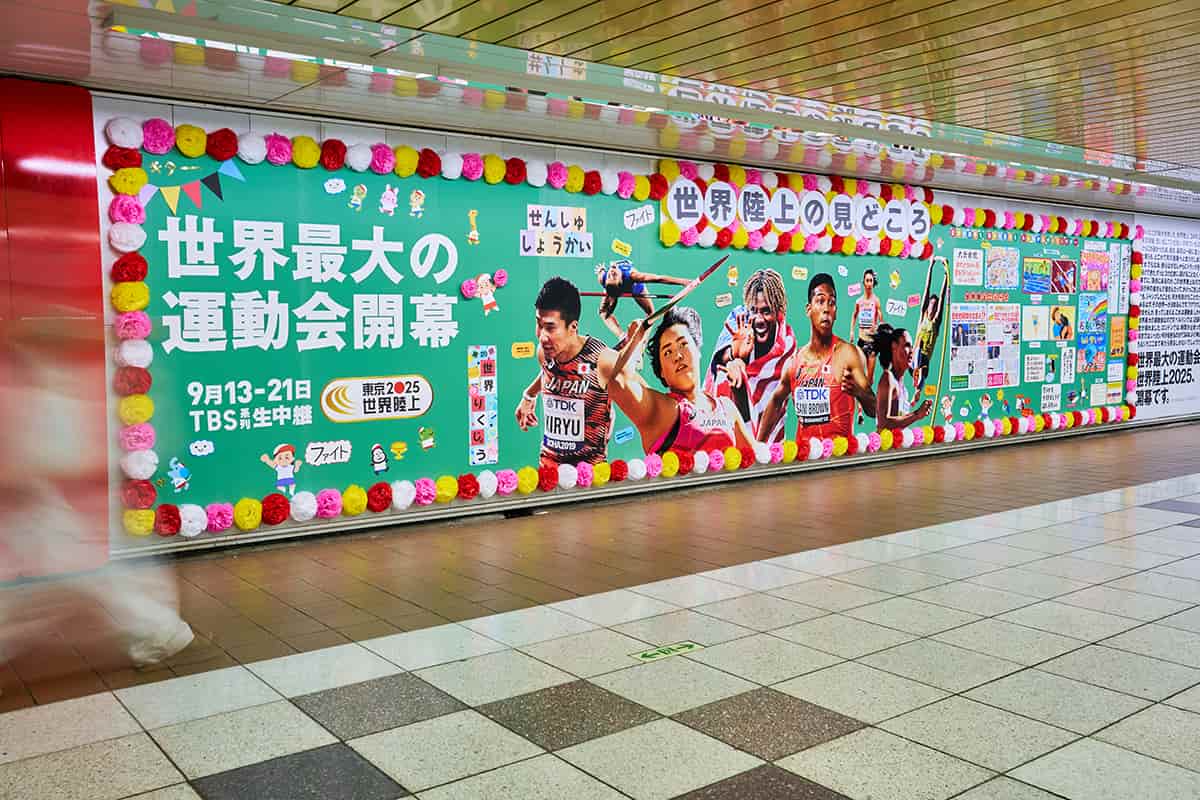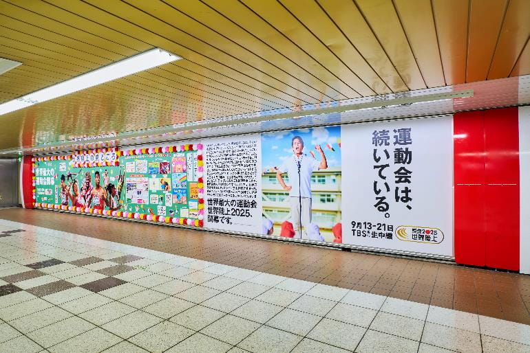 大会に先立ち、TBSは9月1日から首都圏を中心に大規模な交通広告を展開。「世界最大の運動会開幕」というコピーを掲げ、巨大OOHや車両ジャックを実施している。