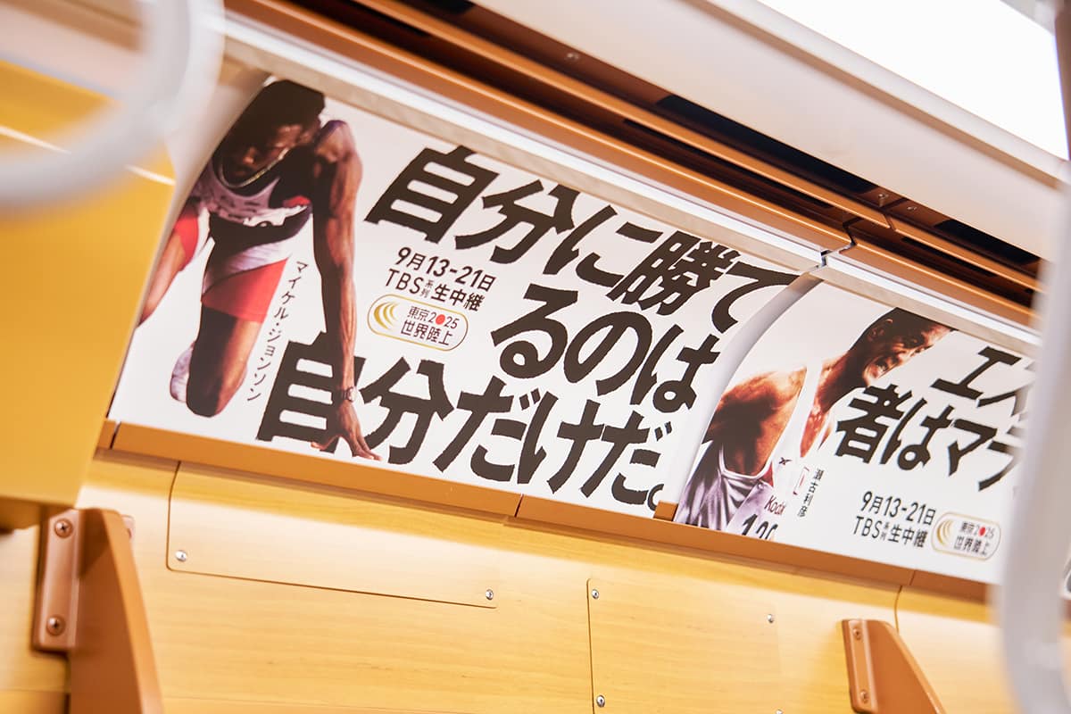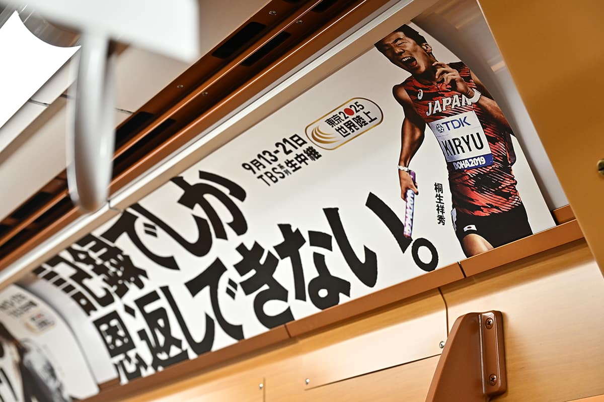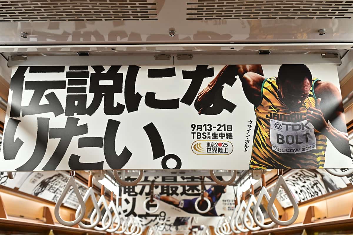9月1日から21日まで実施中の東京メトロ銀座線レトロライナージャックでは、カール・ルイスやウサイン・ボルト、桐生祥秀らの「言葉」に着目。名シーンとともに、これまでの挑戦を振り返る。
