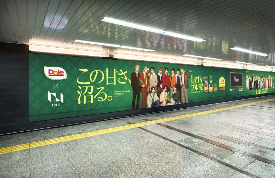 本企画はそれぞれ、同社のバナナによって健康的な生活を目指す「バナ活」、美容のためにパイナップルの消費促進を促す「プル活」のプロモーションの一環だ。どちらも店頭で限定ビジュアルを使用したPOPを設置し、佐藤さんの楽曲『BANANA』とINIの楽曲『Pineapple Juice』を電子サイネージで放映。名古屋・大阪・東京では限定で屋外広告も掲出した。