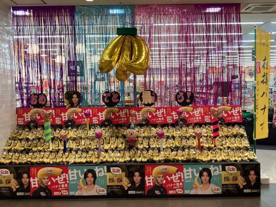 また佐藤さんを起用した企画では、店頭でオリジナルトレカも配布、渋谷のオリジナルラッピングバナナ自販機は期間限定で「バナナ番長」デザインに変更した。INIの企画では、オリジナルステッカーを店頭配布している。