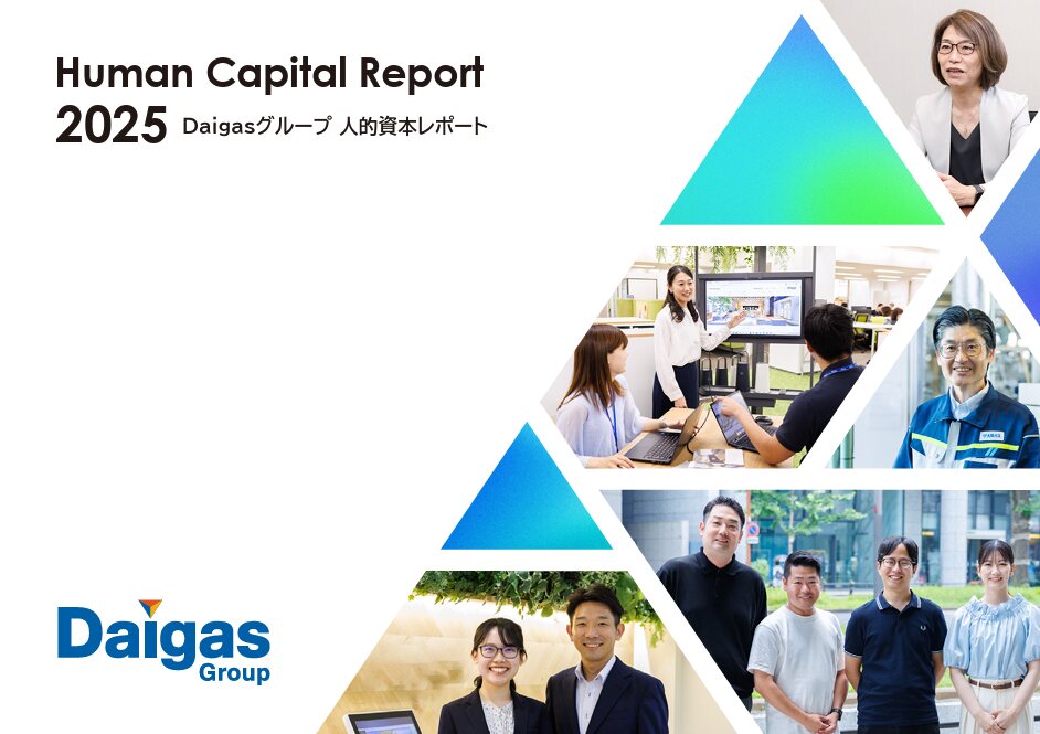 大阪ガスは、2年目の人的資本レポートである「Daigasグループ人的資本レポート2025」を発行した。1年目の2024年版と比べ、ビジュアル面、コンテンツ面ともに大きく変更。「ひとめでわかるDaigasグループ」などの図表を増やすとともに、社長メッセージや役員インタビューも掲載した。