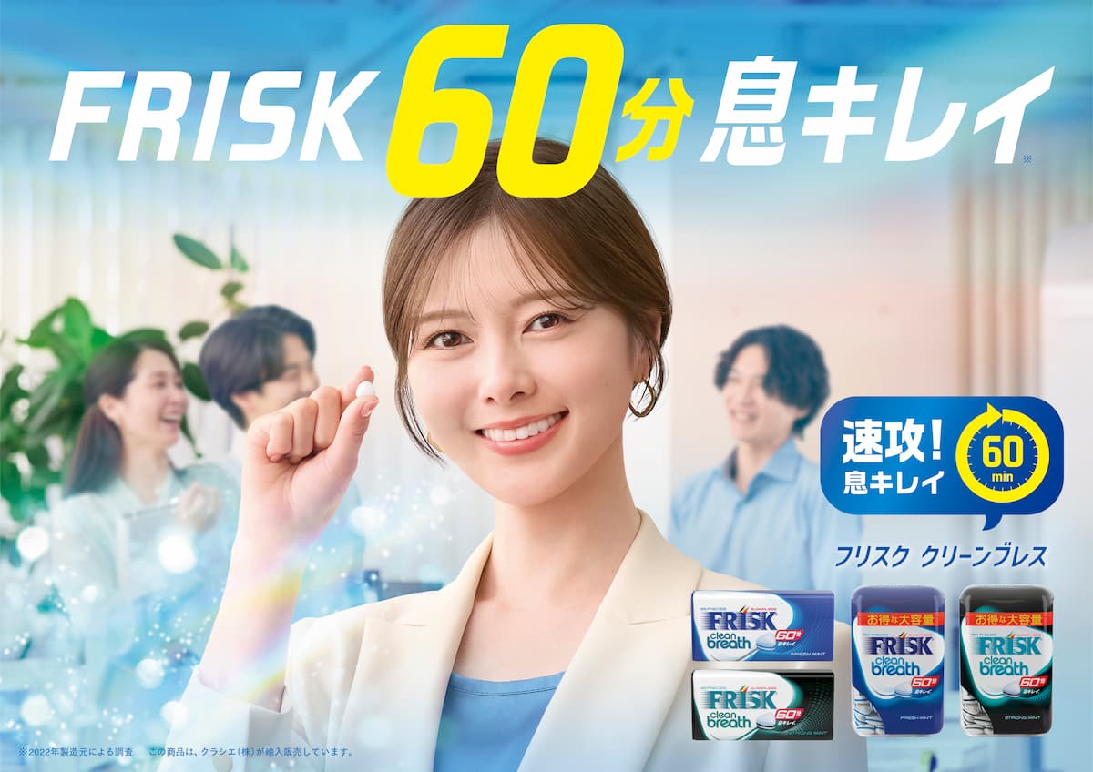 クラシエは、ミントタブレット「FRISK」ブランドの「フリスク クリーンブレス」の新テレビCMを9月22日から放映している。CMキャラクターに白石麻衣を起用。20~40代のターゲット層に訴求するため、会議やレッスンといった具体的な利用シーンを描写している。コロナ禍以降に需要が拡大しているミントタブレット市場において、効果が分かりやすいキーワードや覚えやすいサウンドロゴを用いることで、ブランドの存在感を高める狙いだ。