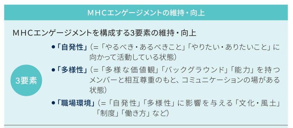 また、「MHCエンゲージメントの維持・向上」の項目では、これらの要素の関係を示す図を新たに記載している。