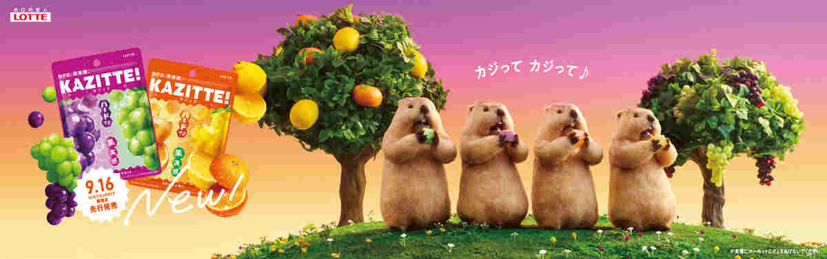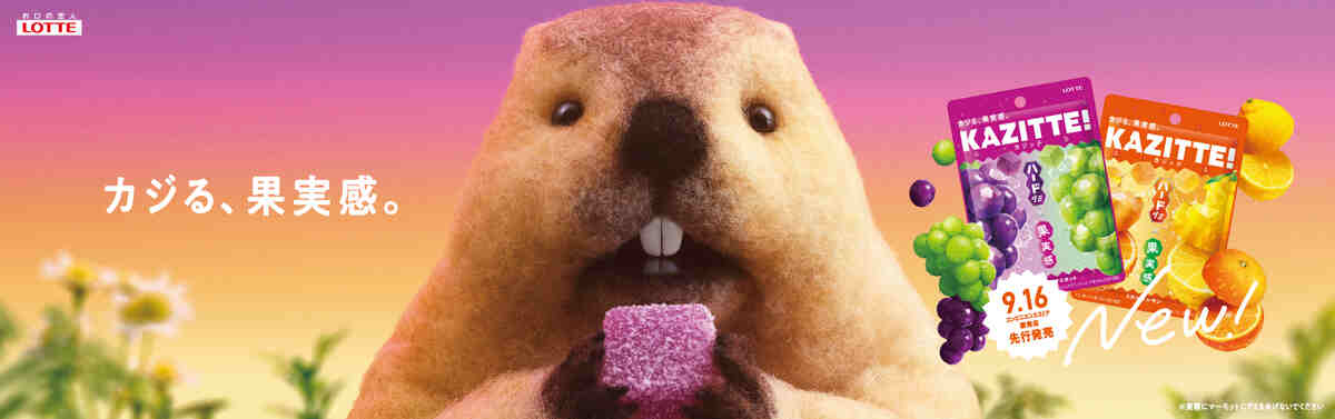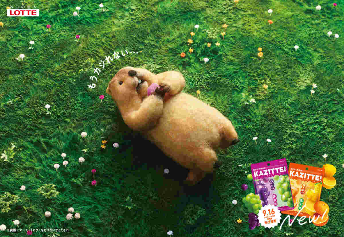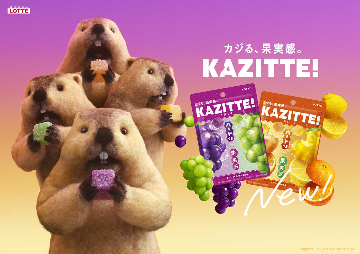 ロッテのグミブランド「カジッテ」のプロモーションが、SNSを中心に注目を集めている。新発売に合わせて展開された山手線のトレインジャック広告では、マーモットたちがひたすらグミをかじり続ける映像が繰り返し流された。そんなシュールな広告が生まれた背景について、同社・広報部に話を聞いた。
