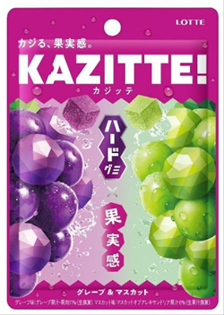 「カジッテ」は、ロッテが9月16日から全国のコンビニエンスストアや駅売店で先行発売を開始した新グミブランドだ。ガム事業で培った製造技術を活用し、しっかりとしたかみごたえと果実感を両立させたハードタイプのグミとして開発された。1袋に2種類のフレーバーを詰め合わせたアソート仕様で、〈グレープ&マスカット〉と〈ミカン&レモン〉の2種を展開している。
