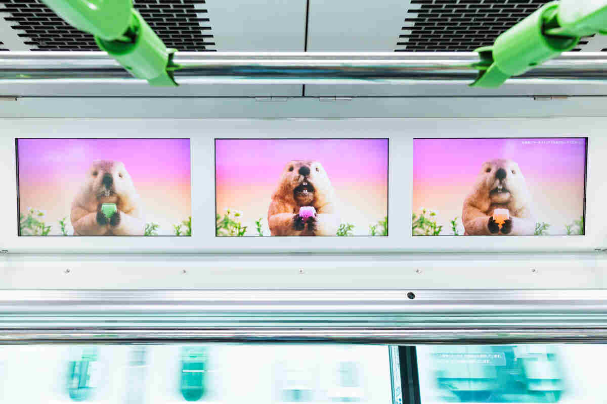 中でも注目を集めたのが、車両内のデジタルサイネージで展開された映像だ。マーモットたちが延々とグミをかじり続けるシーンがループ再生され、「狂気的」「中毒性がある」といったコメントがSNS上で拡散した。担当者は「多くの方に反応いただき嬉しく思う」としながら、「『かわいい』『おもしろい』という反応が大半だと想定していた」という。