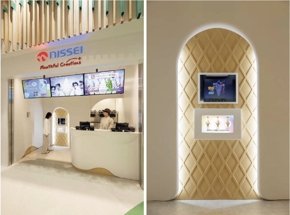 1947年創業のNISSEIは、戦後すぐにソフトクリーム事業に着手し、シェアを拡大したパイオニア企業。特に1970年の大阪万博では完全国産のソフトクリームを提供し全国で流行するきっかけをつくった。今回の万博では2店舗の直営店を出店。そのうち「大阪ヘルスケアパビリオン」では、“フードバリアフリー”を掲げて挑戦した。同社が思う、食の未来とは。