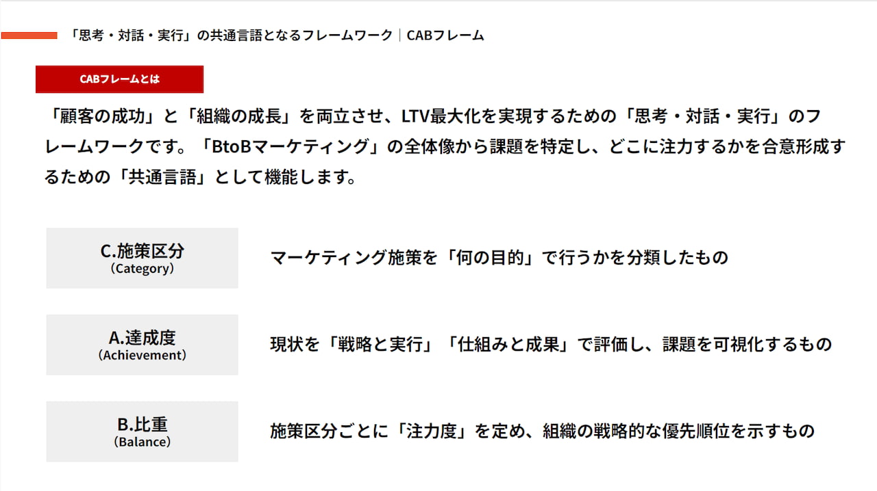 組織を強化する「CABフレーム」とは? LTV最大化のためのプロセスを公開