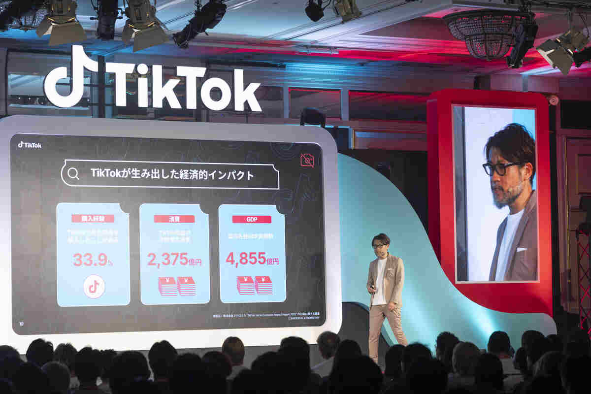 TikTokは月間ユーザーが世界で10億人を超える。かつては若年層がダンス動画を投稿するイメージだったが、現在は幅広い年齢層がさまざまなテーマで投稿するようになったとTikTok APAC ゼネラルマネージャーの佐藤陽一氏は説明する。グローバルのユーザー調査ではTikTokに期待することとして、新しい学びがある(78%)、新しい発見や次の興味対象を見つけられる(67%)が並び、エンタメ目的だけでなく情報取得ツールとして機能していることを示した。また国内を対象にした調査ではTikTokで見た商品を購入したことがある(33.9%)、TikTok経由の年間推定消費を2375億円と試算し、日本経済への影響力の高さを強調した。