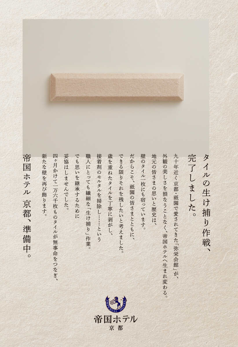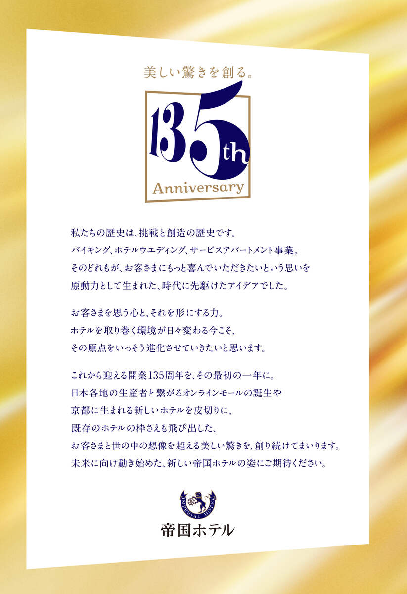 「おもてなしの心」シリーズは、『文藝春秋』の2024年8・10・12月号、2025年2・4・6月号の6回にわたり出稿。2025年11月3日に135周年を迎えることから、帝国ホテルを象徴する空間やショップ、これまでの歴史や理念、2026年に開業する「帝国ホテル 京都」への期待感を醸成するコピーやグラフィックなどで構成される。
