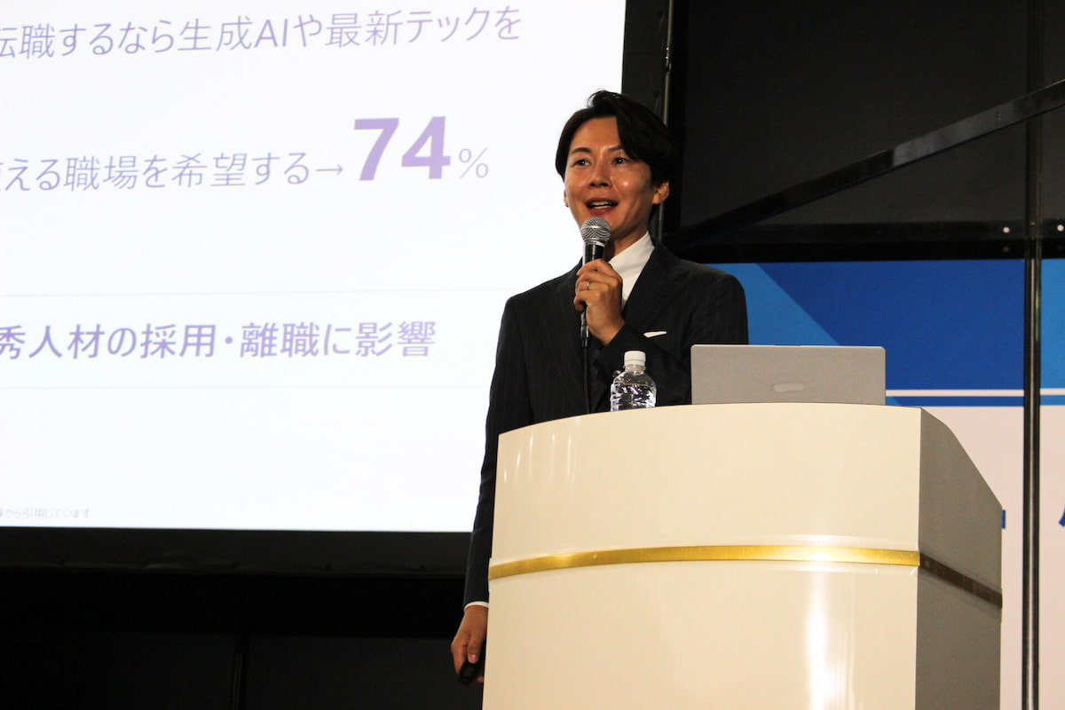 「第5回 営業戦略会議」で行われた講演では、AI活用の具体的な事例とマネジメント層への展開について紹介した。