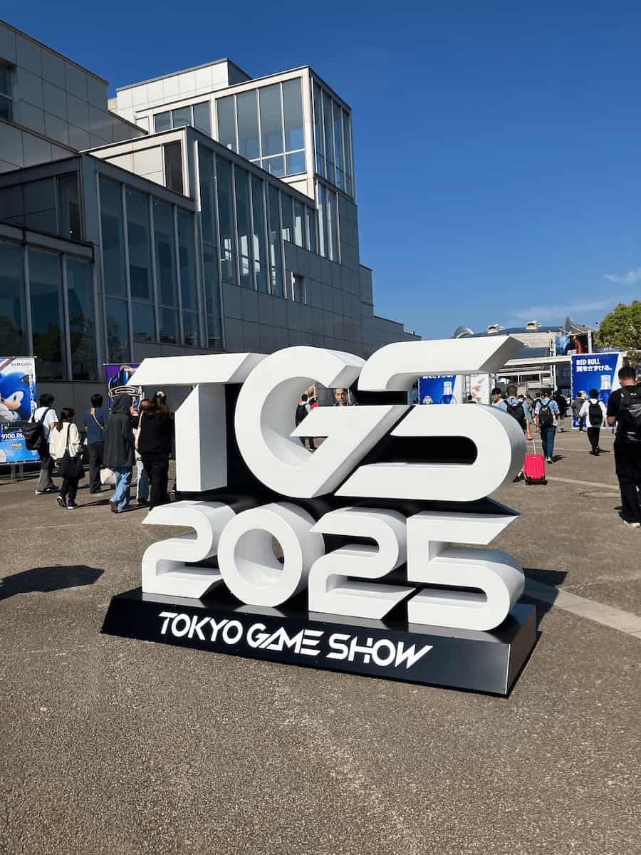 会場の幕張メッセの外に設置された東京ゲームショウ2025のモニュメント。