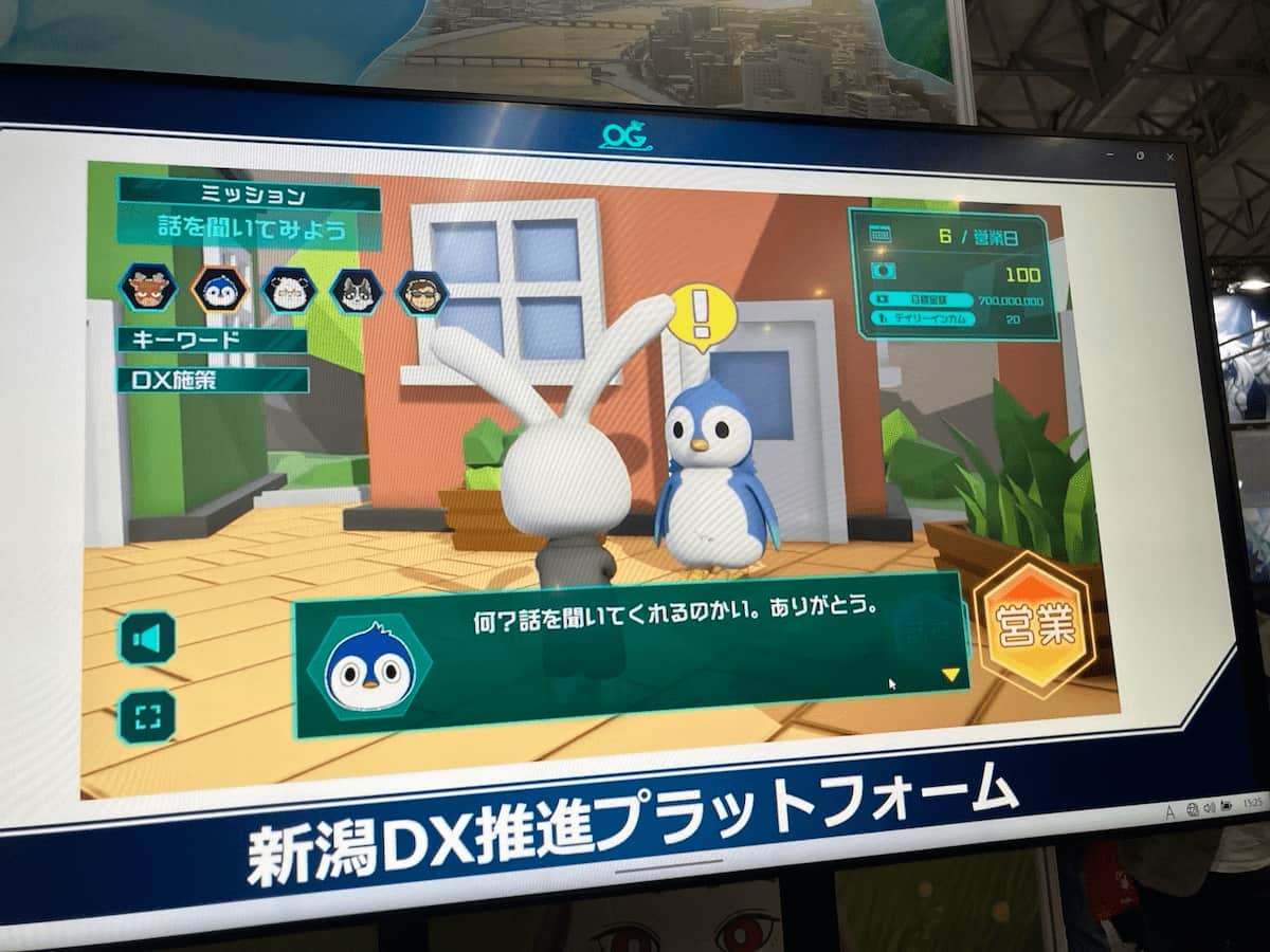 新潟市はゲーム企業の誘致を目的に、ゲーミフィケーション事業を基幹事業とするOGIXと共同でブースを出展。ブース内では「NIIGATA XR プロジェクト」のほか、JR新潟駅で約60年ぶりのリニューアルと共に進められているデジタルツインを活用したまちづくり事業「にいがた2km」などといったゲーム関連の取り組みを紹介した。
