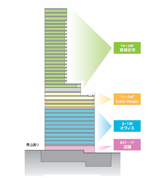 三井不動産は、2026年2月にエリア最高層の約160メートルの高さの複合高層ビル「表参道Grid Tower」(東京・港)をオープンすると10月2日に発表した。トレンド・文化への感度が高い表参道・青山エリアで個々のアイデアや才能が交わる場所となることを目論む。高層階に賃貸住宅を配置、中層階にはロンドン発の会員制クラブ「Soho House」が日本初進出、下層階にオフィス、1階には物販・飲食の4店舗が入居する。