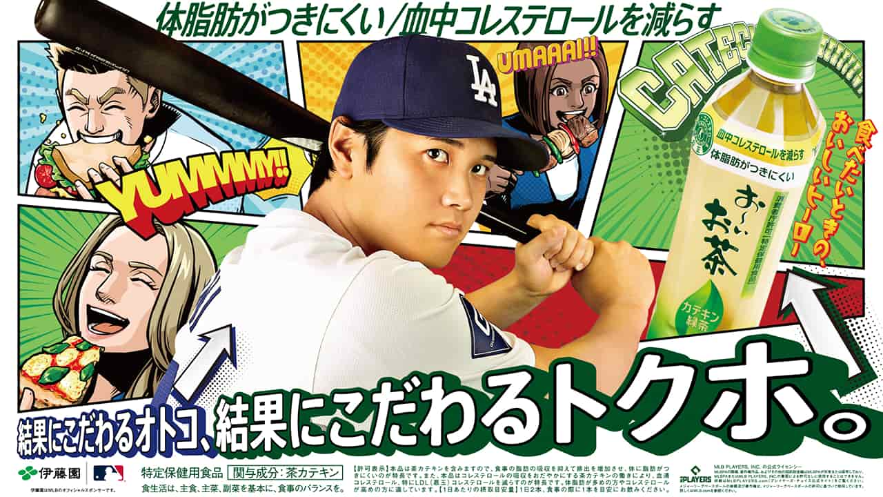 伊藤園は、米大リーグ・ドジャースの大谷翔平選手を起用した「アメリカンコミック」テイストの新CMを10月6日から公開している。特定保健用食品(トクホ)の「お〜いお茶 カテキン緑茶」シリーズのCMで、同シリーズでの大谷選手は初起用となる。同社はグローバルアンバサダーとして2024年から大谷選手を起用した様々なプロモーションを展開しており、国民的スターのキャラクターと商品の価値を結びつけるための様々な工夫を凝らしている。