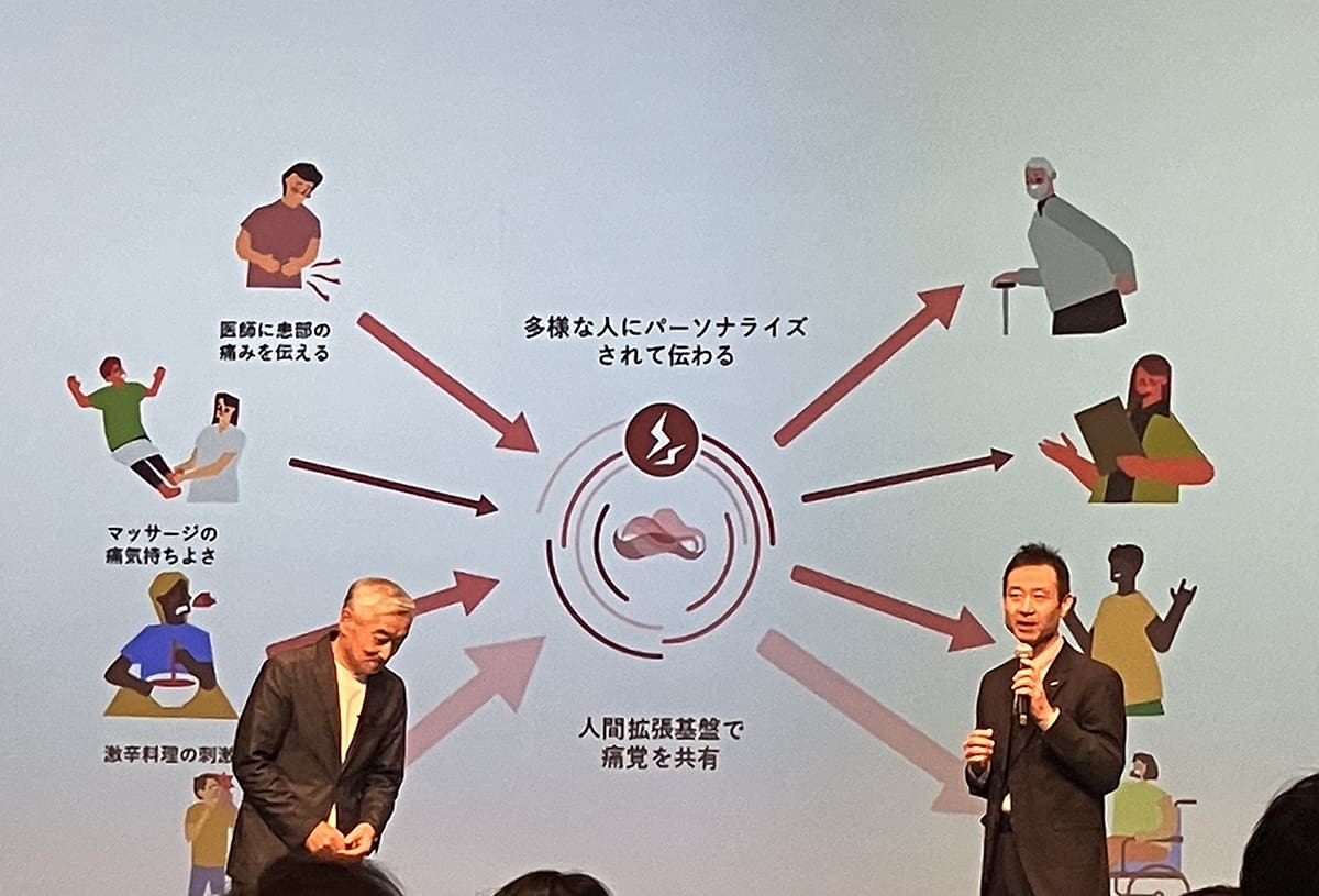 NTTドコモの吉田直政氏(右)は、「NTTドコモは新たなコミュニケーションの創造として『Feel Tech』に取り組んできた。エンタメ分野にも拡張することで、ボクシングのパンチの重さやゲームのダメージなどを体感できるようになることを期待している」と展望を話した。