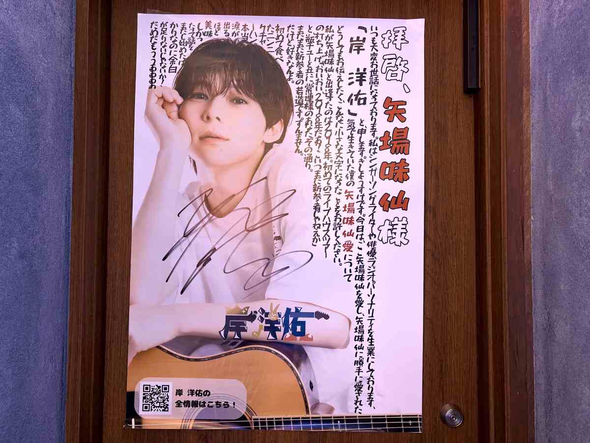 LDH所属のシンガーソングライター岸洋佑。ライブハウスツアーで名古屋公演後に矢場味仙を訪れてファンに。