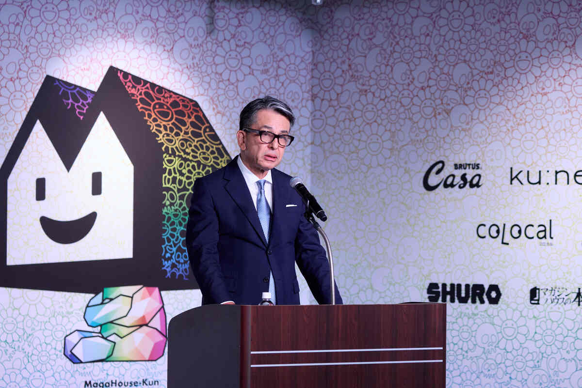 登壇した鉄尾周一代表取締役社長。発表の冒頭で、「マガジンハウスは、1945年に銀座に創業して以来、34誌の雑誌を創刊。他にも書籍やデジタルを通じ、時代に残る、オリジナルなコンテンツをつくり続けてきた」と話した。