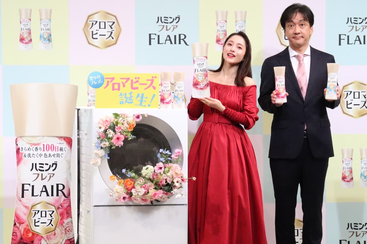イメージキャラクターを務める石原さとみと、ファブリックケア事業部長の岩田毅氏。10月16日に実施した新製品発表会の様子