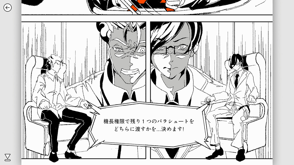 2人のプレイヤーは墜落する飛行機に乗り合わせた乗客となる。脱出用のパラシュートを所持する機長(AI)の問いかけに対して各プレイヤーは返答を入力し、機長を説得することで生還を目指す。