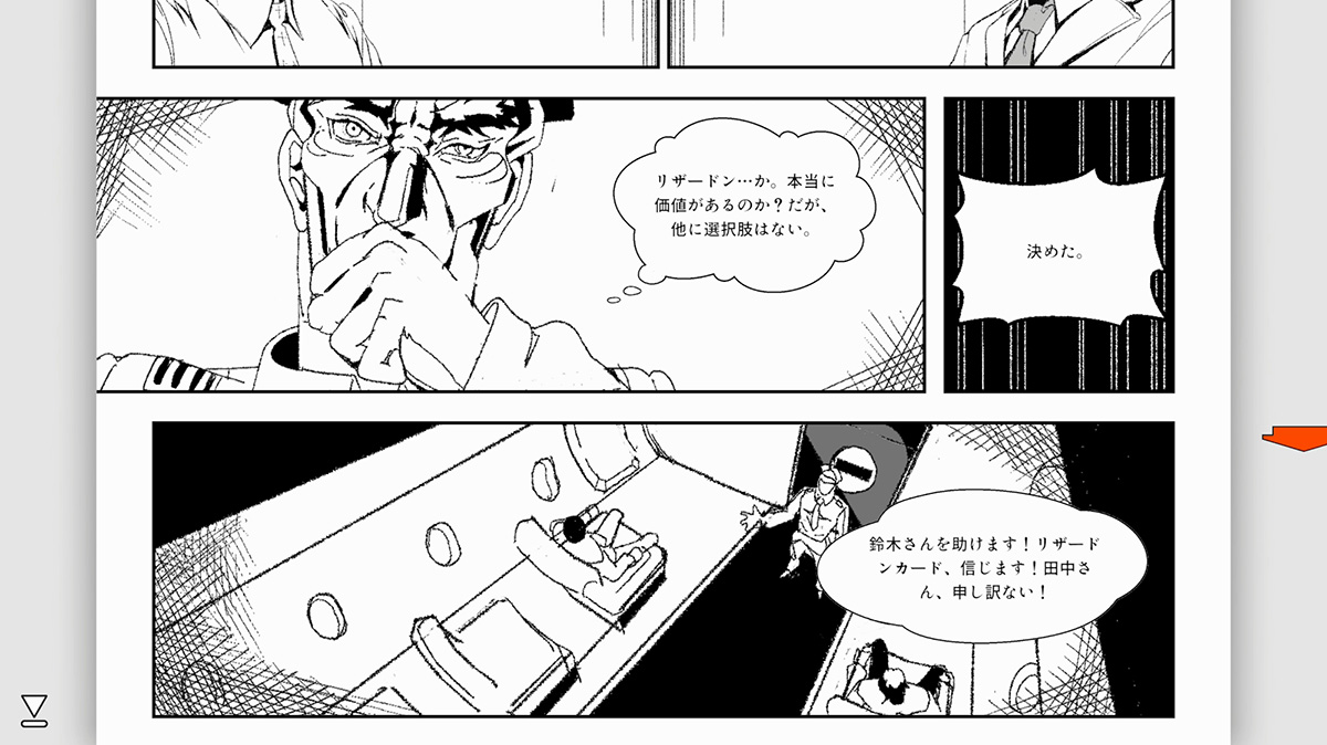 そんな「演画」の最大の特徴は、漫画の形式を用いた点にある。プレイヤーの入力したテキストは漫画の吹き出しとなり、漫画家の永良新さんの手描きの作画と組み合わさって展開される。