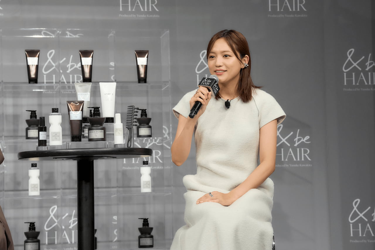 10月8日に行われた新商品発表会に登壇した佐久間は、CMの撮影について「しなやかさの表現や髪の動きなどを、カメラマンさんとともに楽しみながら探った」とコメント