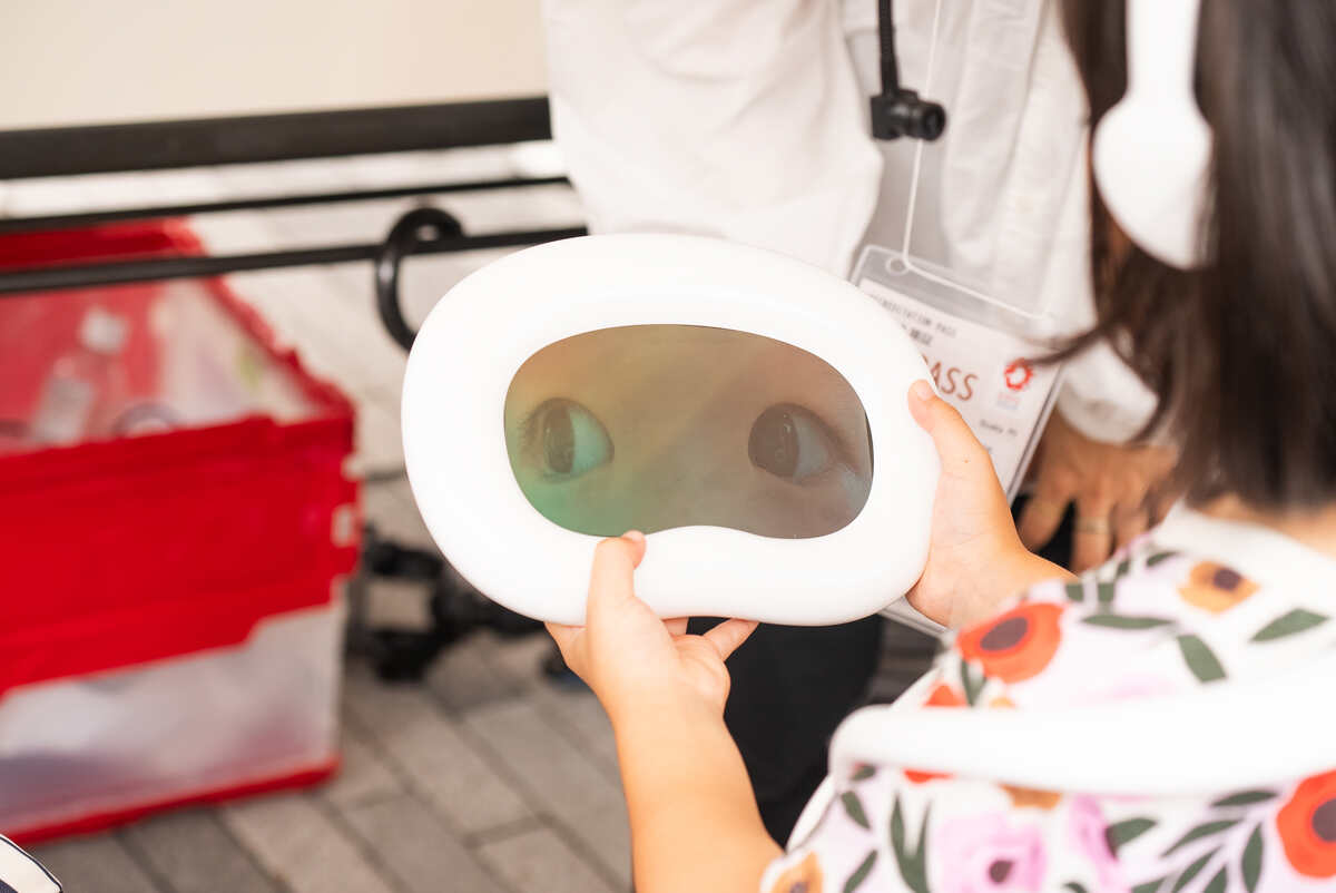 その一番の特徴は、「目を取り出せる」こと。そこで目を意識しやすいフォルム、手に持ちやすい柔らかい形、安定した装着方法などのアイデアをいくつも出して、デザインに落とし込んでいったという。