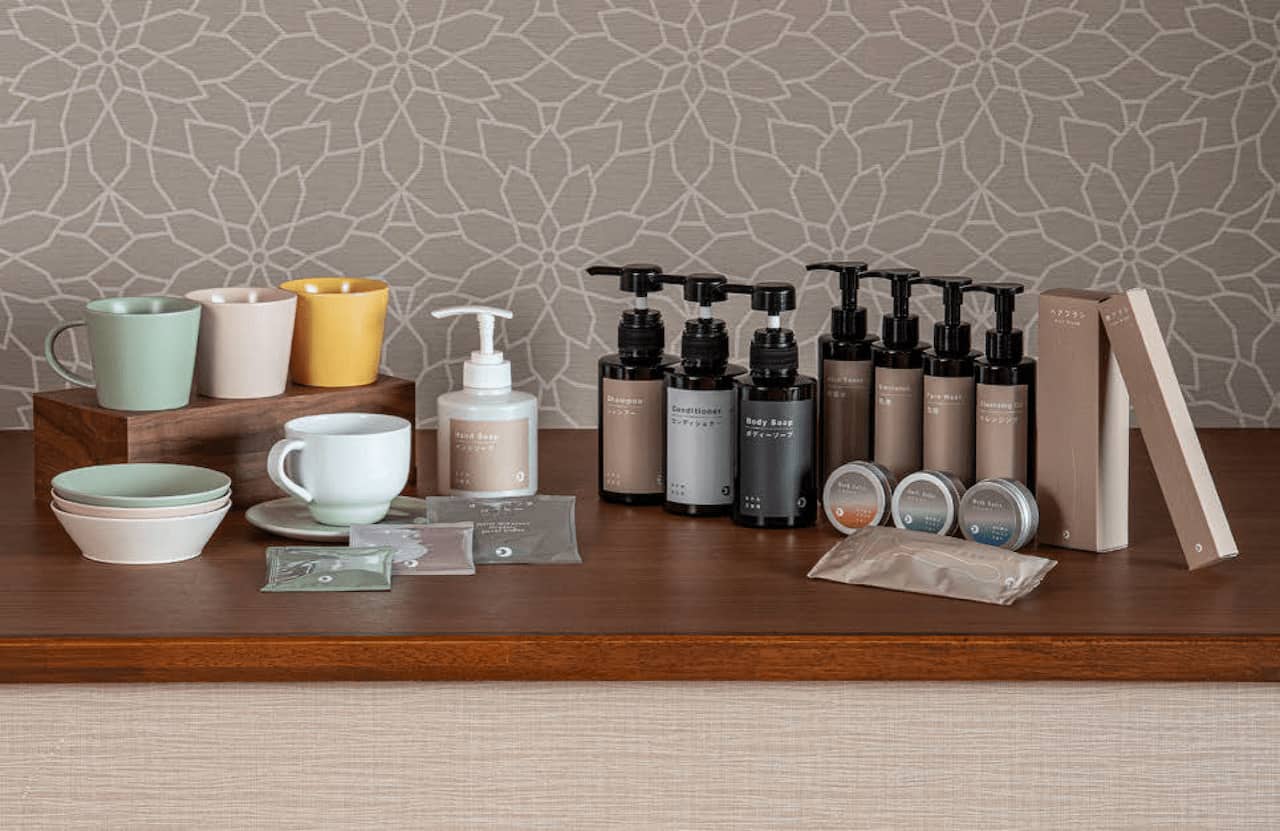 「富士見亭」では、オーガニックをテーマとして、環境配慮と地域資源の活用を融合させたプロダクトへと刷新。約99%が天然由来成分のスキンケア・ヘアケアアイテムをはじめ、有機JAS認証原料を使用したデカフェコーヒーやお茶、木更津産のクロモジ精油を用いたバスソルトなどを開発した。また、再資源化を前提としたパッケージ設計や、客室に調和する洗練された“和モダン”なデザインなど、細部にわたって機能性とデザインを両立。上質なスパリゾートホテルへブランドイメージの転換を図るとともに、宿泊単価に見合ったハイクオリティなアメニティに一新した。