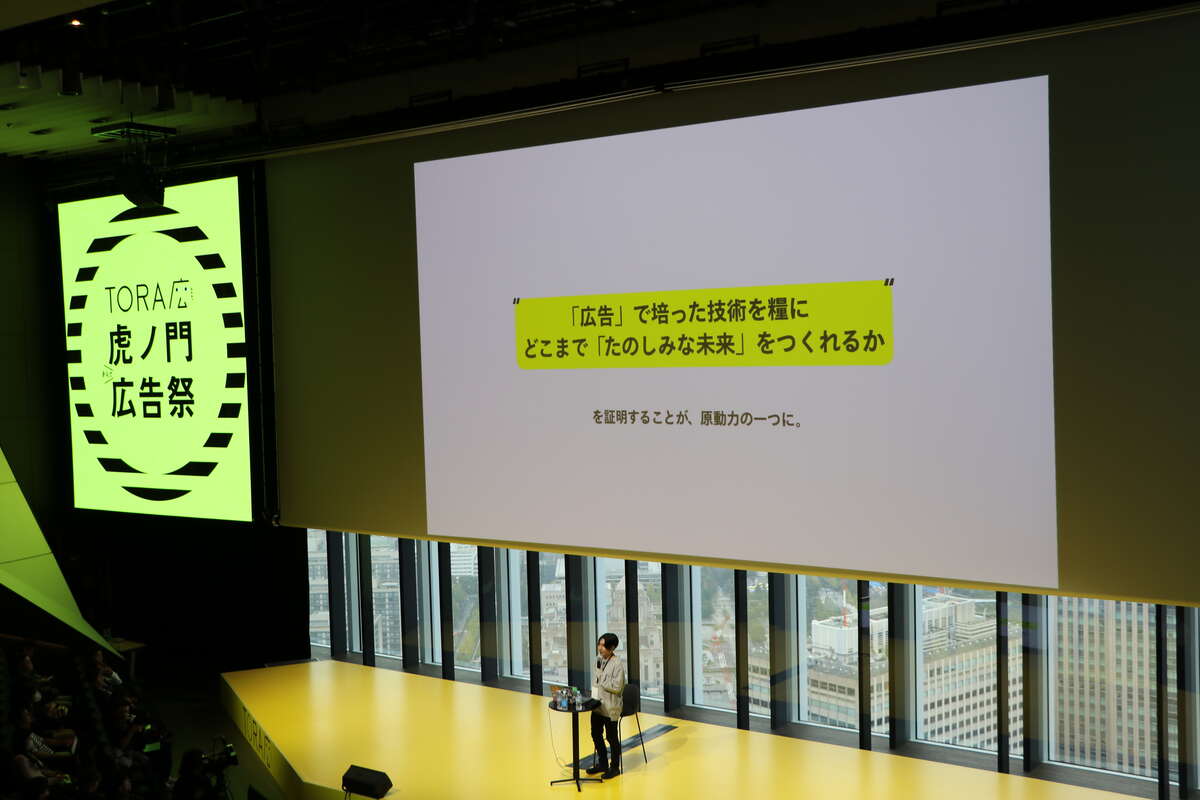 10月17日から24日までの8日間で開催される虎ノ門広告祭。テクノロジーが発展し、メディアの様相が大きく変わり、コミュニケーションの構造と評価の仕方が大きく変わった現在。「広告」の置かれている状況も大きく変化したこの時代に、あえて“広告”についてさまざまな視点から議論していく。5日目には「1000プロジェクトを超える試行錯誤を経て見つけた”広告”の未来 CHOCOLATEの実験報告」が開かれた。